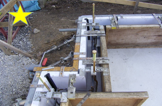 コンクリート打設前、金物又は、 木にて確実に固定する事。 位置、及び高さに注意する。 同上 クランクホールダウン L=800 クランクアンカーボルト L=420 〇打設後 レベラー流す前に アンカーボルト、ホールダウン金物は 立ちを直しておく コンクリート打設前の記事 SUS差筋次の記事