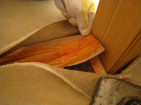 カーペットは裏巻きで、広げた時に端(耳)部分がはね上がっている。