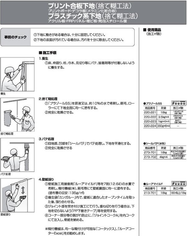 プリント合板下地(捨て糊工法)・プラスチック系下地(捨て糊工法)