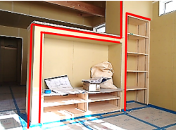 この様な造作棚、カウンター巻き込み部石膏ボードも同様に正面ボードを勝たせる