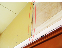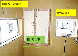 サッシなどの開口部のボードは、サッシ角をまたいでボードカギ貼り