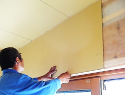 外周壁ボード貼りはボード小口に木工用ボンドを塗布し次のボード貼りとする。