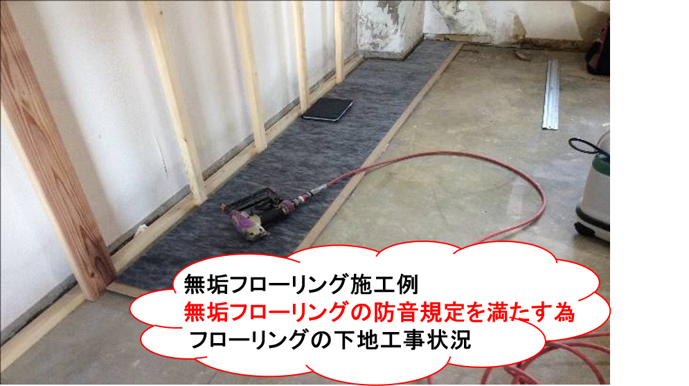 フローリングの下地に使う材料で、防音規定を満たす必要があります