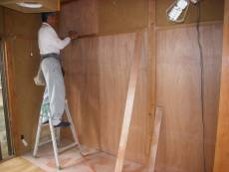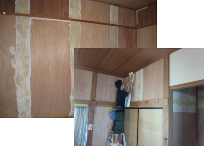 5mm以上のラワンベニアを使用し、ウレタンボンド、25mmステープル釘併用し ベニアを固定する
