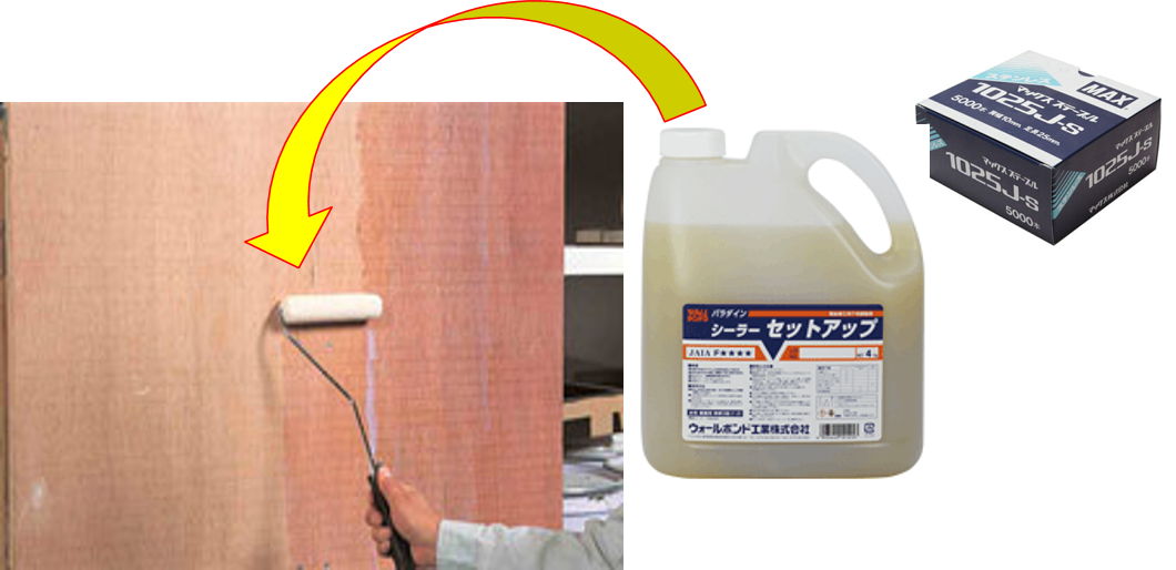 ベニア下地のアク止めにシーラーを塗布し完全乾燥させる