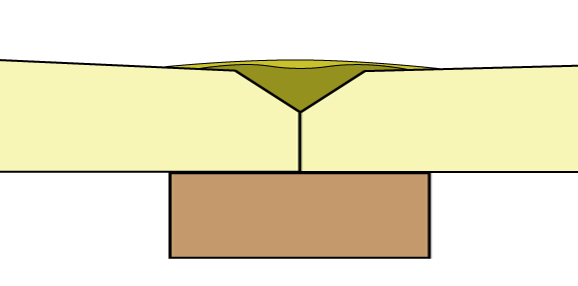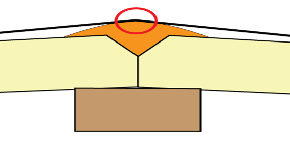 下地が凸の場合、このようにパテをかけたとき、パテの山(頂点)が高くなってしまうのでそれが起点になって仕上がったクロスが線上に浮いてしまう