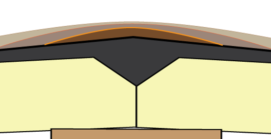下地が凸の場合、パテの幅を広くかけて頂点が高くなりすぎないように注意する