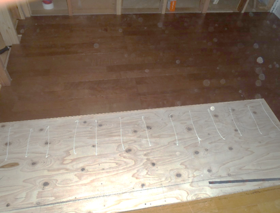 ②根太ボンドの塗布
