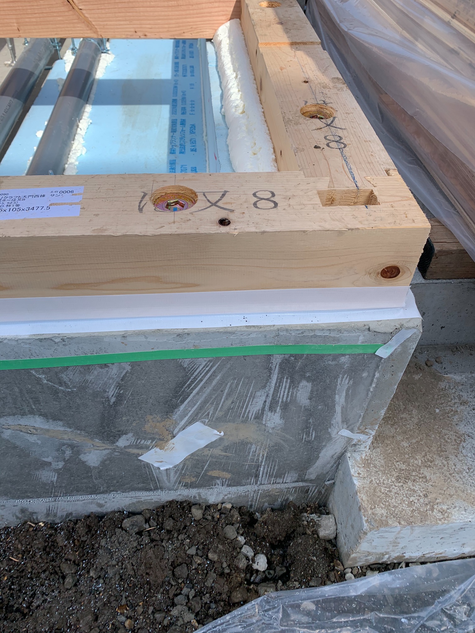 気密テープを土台~外部基礎天端まで