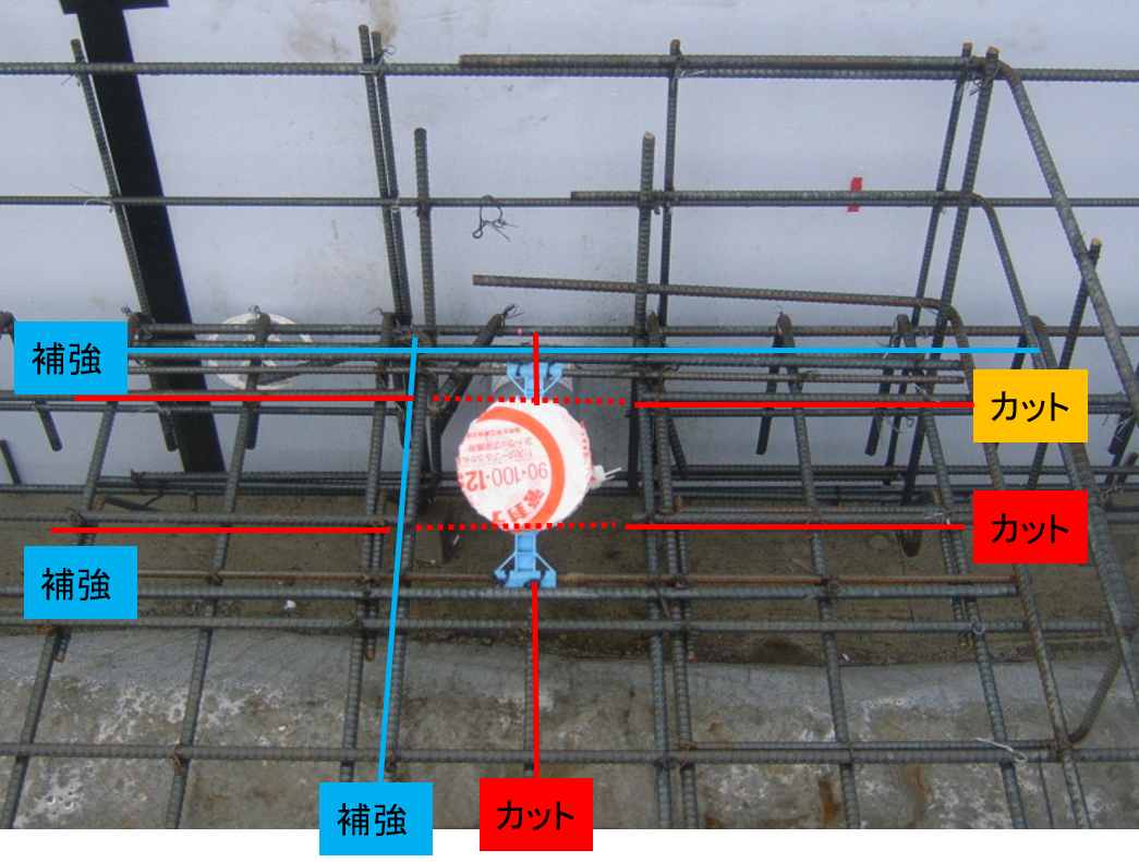〇鉄筋カット後補強筋施工