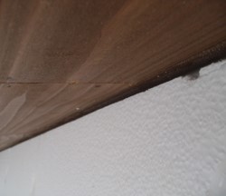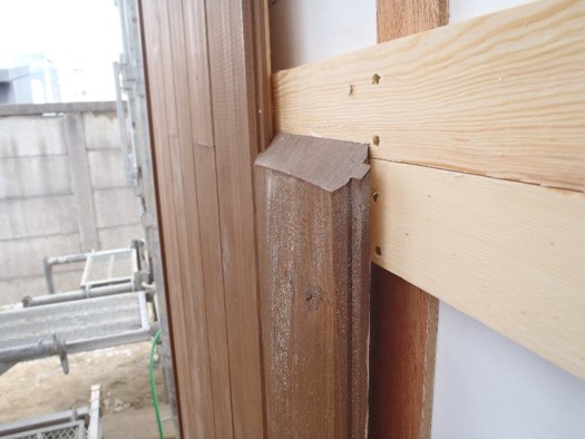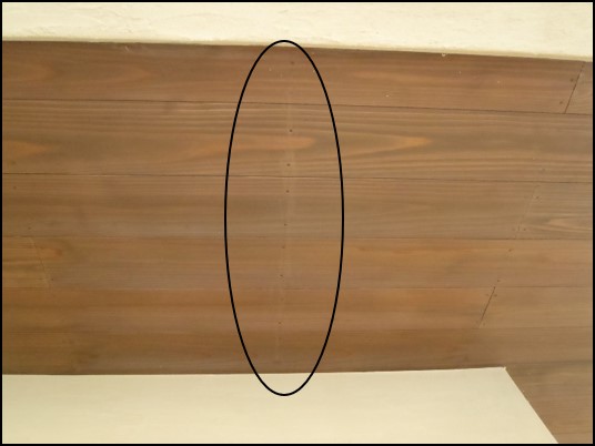 外壁板張り工事 取付前にさね部先行塗装 板縦張りのジョイントは基本的に無しとし ジョイント場合は図のように斜めカット 板張りにはSUSラセン釘 正面打ちで施工する 接着剤は使用しない (釘を打つ際に、鉛筆・墨などで印をしないこと。 鉛筆を消しゴムで消しても 塗装した際に変色して見えるため) フィニュッシュで仮止め(実内部)し 糸を張って釘打ちするのが良い 軒天施工状況 外壁との取り合いはシールにて フレキシブルジョイントとし外壁材を塗り重ねる (シール材はノンブリードのウレタンの場合) 軒天前の記事 ステンド次の記事