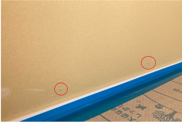 上記写真は、金物撤去後のビス穴をボードビスで埋めた状態です。