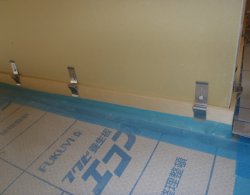 巾木の取り付けは接着剤にて接着止めとし、専用仮止