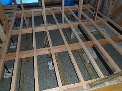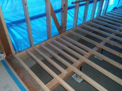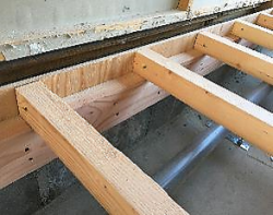 土台の下端から根太天端までベニア12mmを土台に打ち付ける