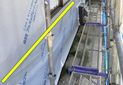 赤ライン部防水紙竪重なり部は気密テープ貼りとする