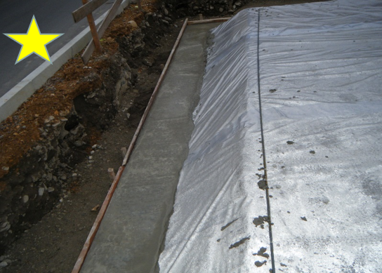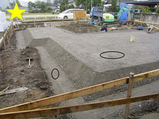 砕石工事 転圧後 この状況の時に砕石を掘り、砕石圧の写真を撮る 砕石は十分締固め平滑に すること。 防湿シートは0.1mm以上とし、150mm以上被せて施工する (安全をみて200mm被せる) 土間シート貼り、捨てコン下に入れる。 防湿シートが風でめくれないように抑えておく(テープで貼るのが安全) 貫通部前の記事 外壁貫通部次の記事