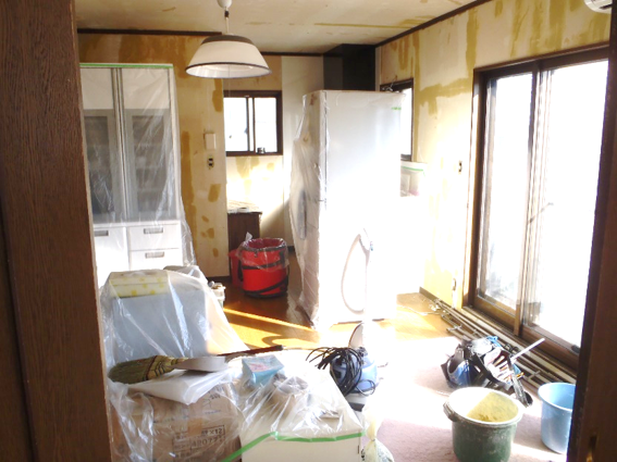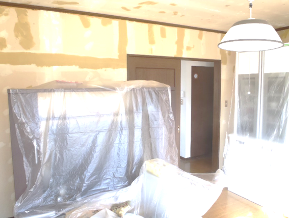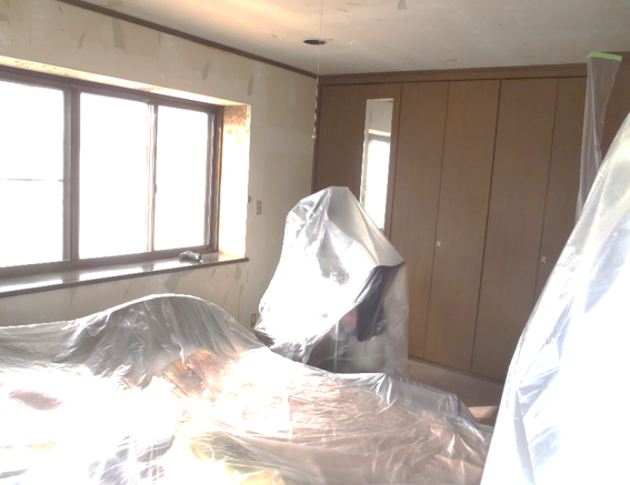 室内に家具がある場合はマスカーで必ず養生を行う。